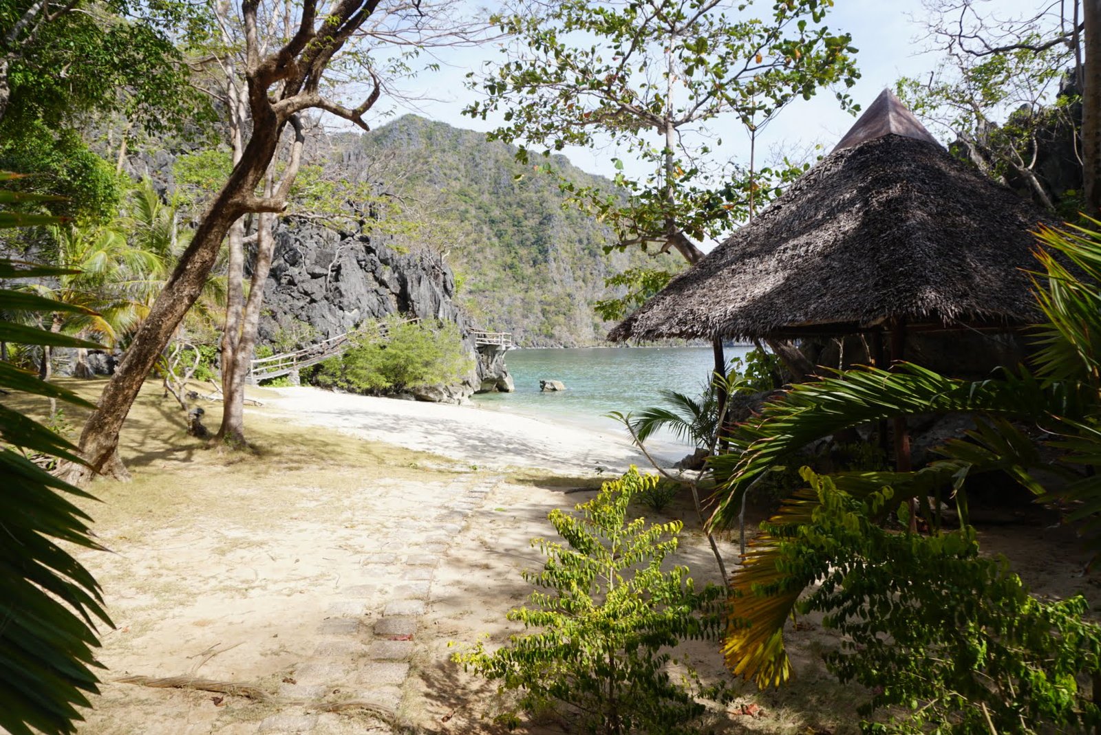 The resort has a nice bar perched on an outcrop reached by a boardwalk.The more interesting walk starts at the other end of the main beach: